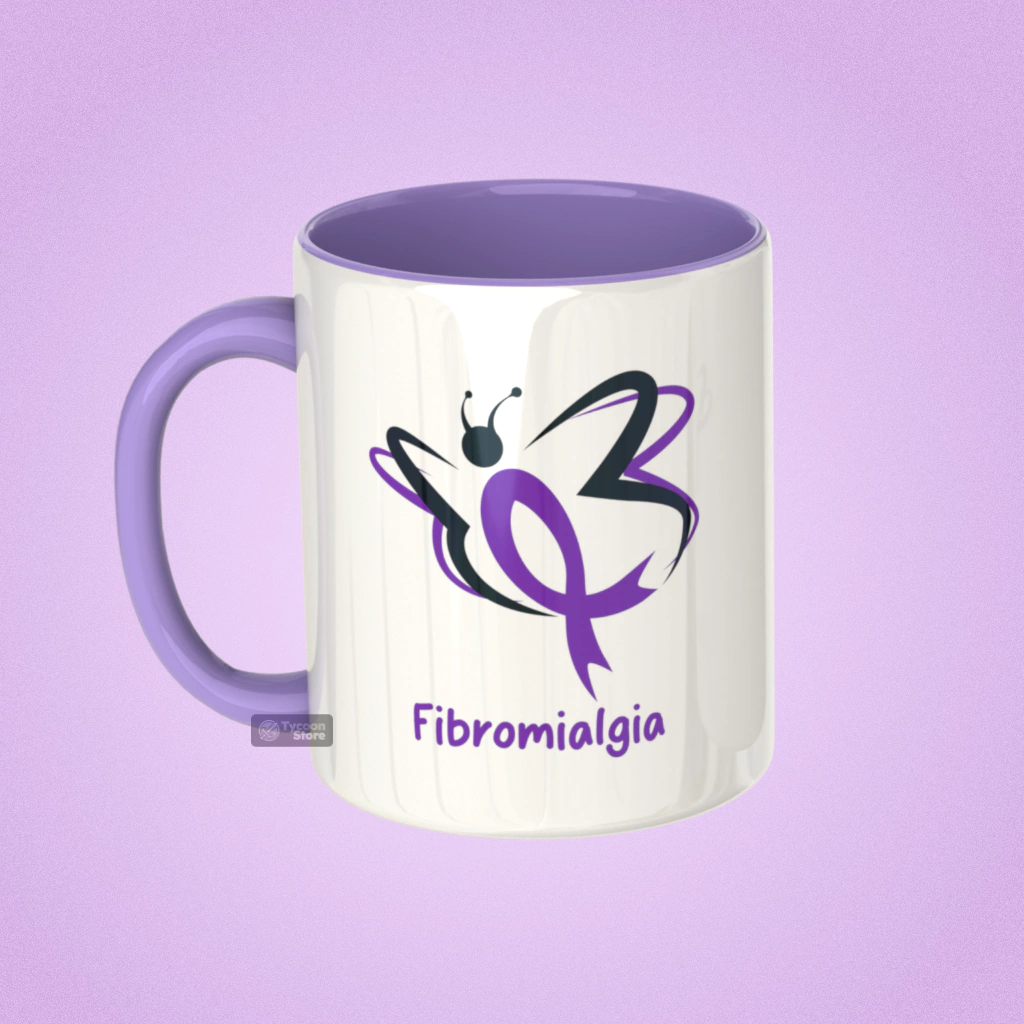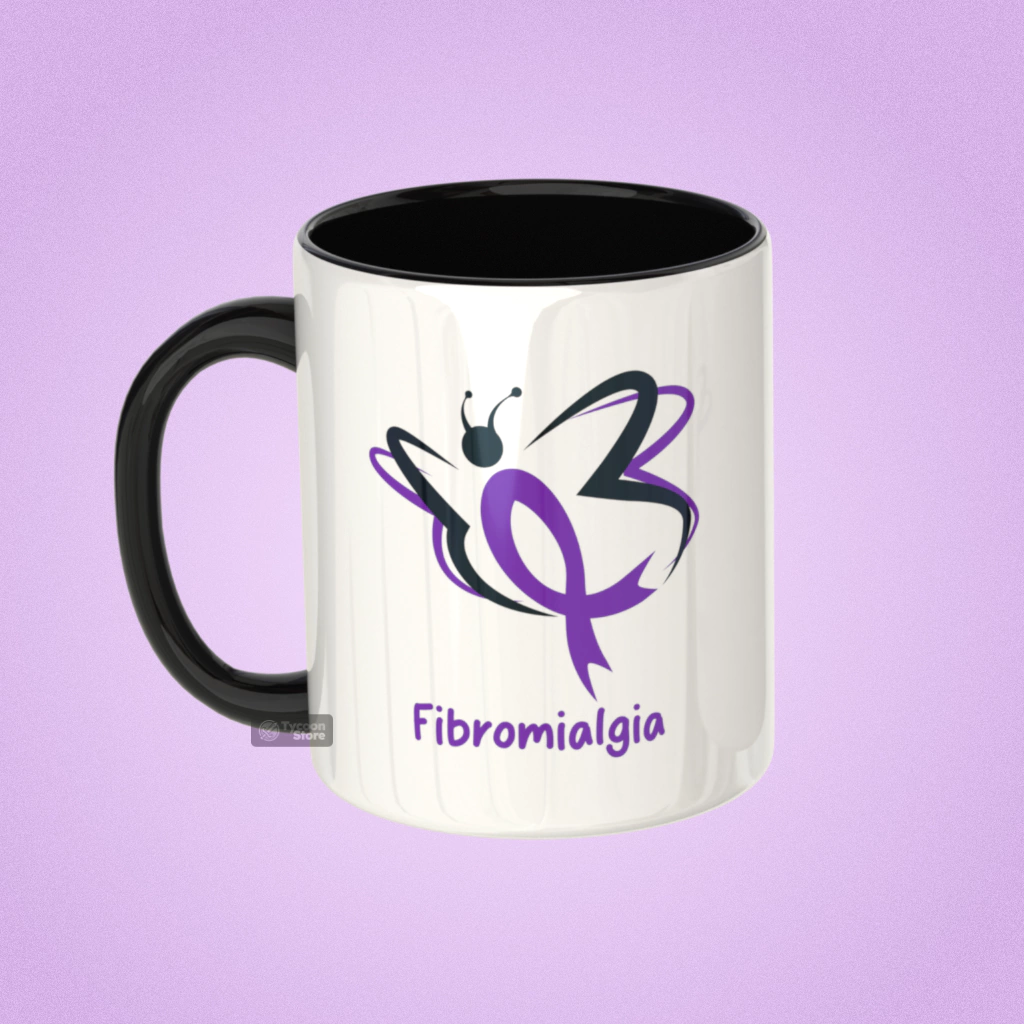 Canecas com a borboleta e o lanço, homenageando a Fibromialgia